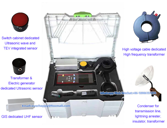 ☀ Built-in ultrasonic sensors and transient ground voltage (hereinafter referred to as TEV) sensors, which can be connected with special sensors such as transformers, GIS, overhead lines and cables;