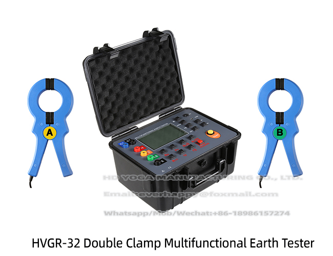 HVGR-32 Double Clamp Multifunctional Earth Tester is also called double-clamp grounding resistance tester. It is an advanced grounding resistance tester that integrates a variety of measurement methods. In addition to the traditional function of measuring grounding resistance with auxiliary grounding, the instrument also has the unique function of measuring without auxiliary grounding. It adopts large LCD gray and white screen backlight display and microprocessor technology, and controls the grounding resistance test by microprocessor-controlled precision 4-wire method, 3-wire method, simple 2-wire method, selection method, and double-clamp method. It adopts the design of large-caliber current clamp, and uses the double-jaw measurement technology to realize online measurement without the need for auxiliary grounding and isolation of the grounding body from the equipment. Widely used in telecommunications, electricity, meteorology, computer rooms, oil fields, power distribution lines, tower transmission lines, gas stations, factory grounding grids, lightning rods, etc. The instrument has the characteristics of accurate, fast, simple, stable and reliable testing.
