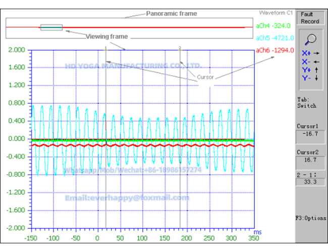 Real-time monitoring: HVLB-803 accesses to 16 switching values and 18 analogues. HVLB-803 will calculate the effective value of the analogues, calculate the magnitudes (frequency, active power, reactive power, zero sequence, negative sequence and etc.) and calculate harmonic (simultaneously calculating three ways, and up to 21 times) and vector diagram (up to 4 groups, each of which comprises up to 6 analogues) in real time. According to all the data above, the status of switching value and the waveform of the analogue can be displayed in real time. The effective value and switching value can be uploaded to the host computer in real time.