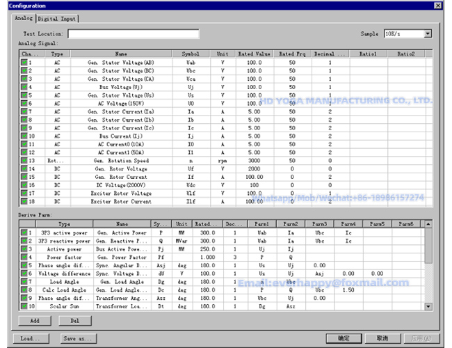 General starting electric test of power generator: HVLB-803 can conveniently realize the X-Y characteristics test of any two groups of parameters, can be applied to curve fitting, and also can be used for replacing the vibrator oscilloscope to record the effective value of an optional analogue. The function of the HVLB-803 covers the no-load test, short-circuit test and the like of power generator, the step test, de-excitation test, and voltage stepping test from zero and the like of excitation regulator. If the HVLB-803 is applied to the electric test, test efficiency can be improved, measuring accuracy and data processing capacity can be improved, and the automation of electrical test can be realized.